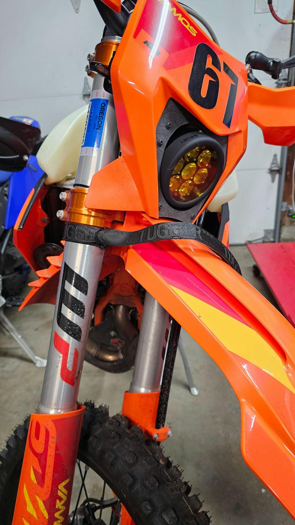Kit includes the following: a RUBY Moto R7, MotoMinded bracket to fit directly into KTM EXC-F and XC-W models, and a RUBY Moto Hyper-Vis Lens Cover.